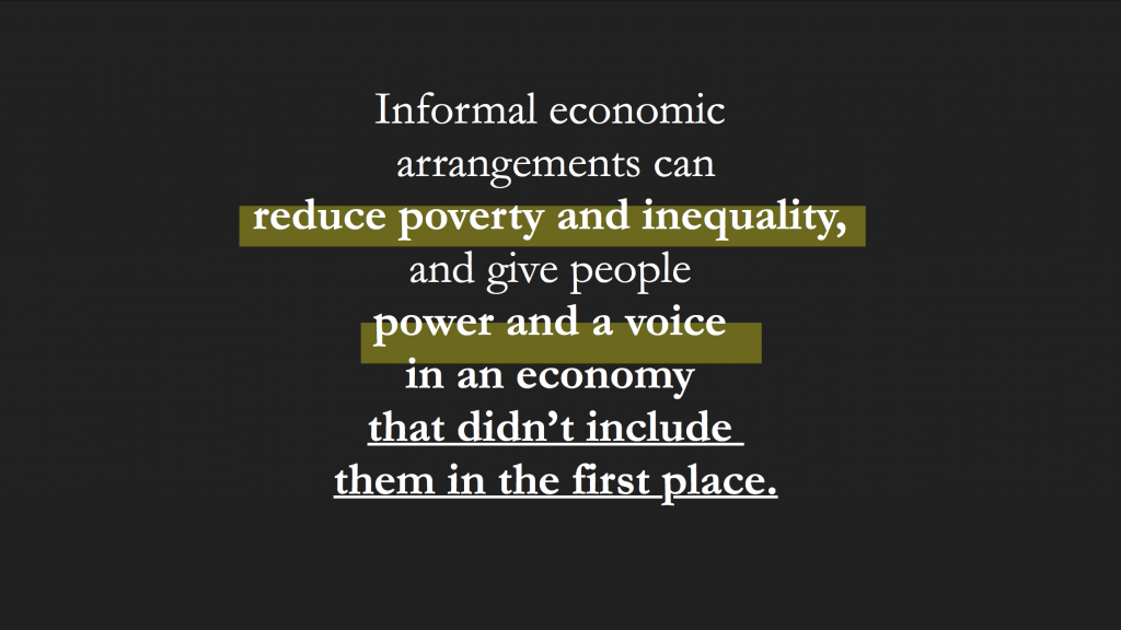 Certainly, the informal economy also allows for bad actors. You don’t have to look hard to find the hundreds of vulnerable domestic workers that are unseen by our society.